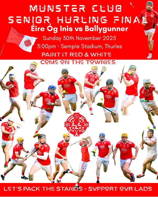 For the first time in 35 years, we will contest the Munster Club Senior Hurling Final. The game v Ballygunner throws in at 3pm in Semple Stadium on Sunday November 30th. It has been quite the journey to this point and please God come Sunday evening we will have another piece of silverware on display.
