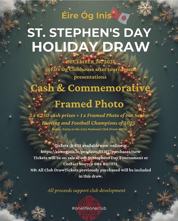 Draw will take place in the clubhouse at 7.30pm on St Stephens Night